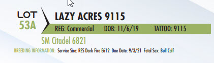 BREEDING INFORMATION: Service Sire: RES Dark Fire E612 Due Date: 9/3/21 Fetal Sex: Bull Calf