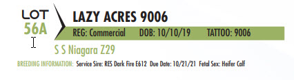 BREEDING INFORMATION: Service Sire: RES Dark Fire E612 Due Date: 10/21/21 Fetal Sex: Heifer Calf