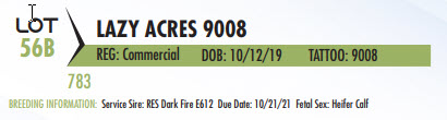 BREEDING INFORMATION: Service Sire: RES Dark Fire E612 Due Date: 10/21/21 Fetal Sex: Heifer Calf