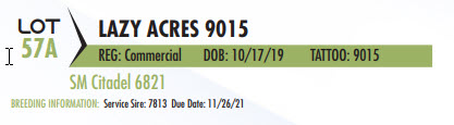 REG: Commercial DOB: 10/17/19 TATTOO: 9015