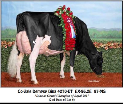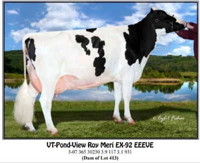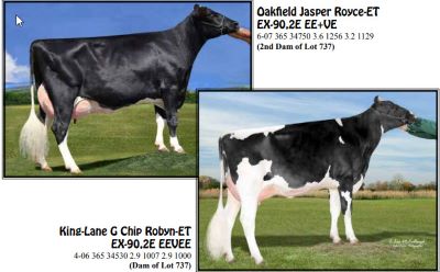 6-03 EX-91,2E EEVEE 72428121 100%RHA-NA Born 12/9/13 2-02 365 26236 3.4 902 3.1 802 3-10 309 28190 3.5 991 3.1 862 4-10 276 24661 3.5 864 3.1 757 5-10 344 26554 3.6 950 3.1 836 *DRY COW* Bred 8/28/20, Due 6/4/21 to 507HO10920 Gold Chip (sexed) (calf is potential 19th generation EX) *DONOR DAM *Rumble is an 18th gen. EX cow!! *Daughter sell as Lots 2003, 2110, 2253, 2255, 2269, 2277 & 2285 (all these daus are pot. 19th gen EX!) -SPECIAL OPPORTUNITY!