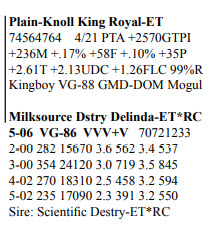 RHA 210 cows 20,632M 3.9% 787F 3.1% 651P