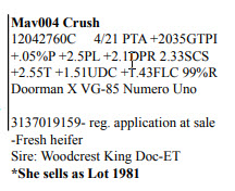 3139130307- SELLS AS GRADE Born 7/20/20 *she would be eligible for registration because all sires ID’d but this lot is full responsiblity on buyer to fill out and apply for a reg. certificate.