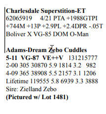 3-02 VG-85 VV+V+ 72364055 99%RHA-I Born 9/11/14 2-00 306 25306 3.9 998 3.2 802 3-00 337 30634 4.1 1254 3.4 1029 4-01 289 28226 3.9 1090 3.2 909 5-02 265 27003 4.1 1113 3.0 809 6-01 143 17516 3.0 522 2.7 465 RIP April test- 107 lbs 2.7%F 2.8%P SCC 22,000 Fresh 11/10/20 Bred 3/31/21 to 94HO19775 Handshake