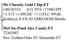 Sire: Mogul Dam: Dam of Lot 1713 (Paper Pending) 122 lbs. 4.3F 2.9P 2.4 L SCC