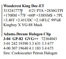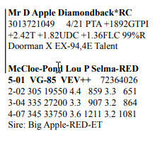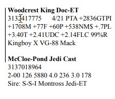 3137019168- reg. application at sale Born 8/14/18 1-11 239 15304 4.2 648 3.2 496 RIP April test- 79 lbs 4.4%F 3.4%P SCC 141,000 Fresh 8/6/20 Bred 1/1/21, Due 20/8/21 to 200HO11822 Alleyoop