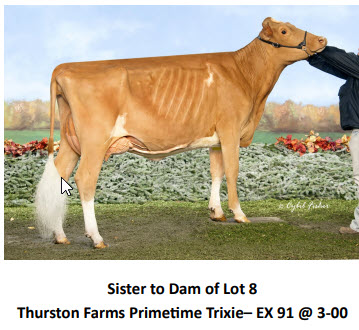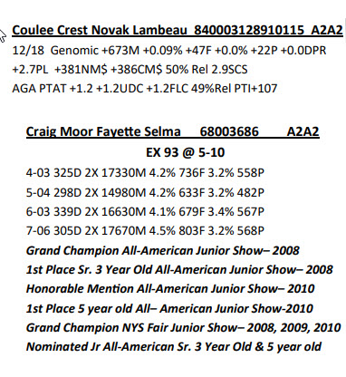 2021 NYS Guernsey Video Sale 232 Broadway, Saratoga Springs NY, 12866 AWESOME GUERNSEY OFFERING Contact Agent: Katie Shultz 717-543-7883 Catalog | Terms of Auction Download CATALOG Catalog | Terms Download CATALOG All Items (24) Cattle (18) Semen (6) Categories All Items (24) Cattle (18) Semen (6) Search Item #: Keyword: Search Catalog Item #: Keyword: 20 items per page 50 items per page 100 items per page Go to page #: 1 , 2 #1 – Misty Meadows Pilot Sequoia-ETV Born: 04/21/2019 Due May 15, 2021 to Boman– if calved before sale calf is not included A2AA Location: 232 Broadway, Saratoga Springs NY, 12866 Contact Agent: Katie Shultz 717-543-7883 More Info / Bid Now Track this Item Sold High Bid: $7,000.00 – #2 #1 – Misty Meadows Pilot Sequoia-ETV Sold High Bid: $7,000 More Details More Info / Bid Track Item Born: 04/21/2019 Due May 15, 2021 to Boman– if calved before sale calf is not included A2AA Location: 232 Broadway, Saratoga Springs NY, 12866 Contact Agent: Katie Shultz 717-543-7883 #1A – 10 Units of Tampa 10 Units of Tampa Location: 232 Broadway, Saratoga Springs NY, 12866 Contact Agent: Katie Shultz 717-543-7883 More Info / Bid Now Track this Item Sold High Bid: $5.00 – #5 Auction Type: Quantity x Price Quantity: 10 #1A – 10 Units of Tampa Quantity x PriceQuantity: 10 Sold High Bid: $5 More Details More Info / Bid Track Item 10 Units of Tampa Location: 232 Broadway, Saratoga Springs NY, 12866 Contact Agent: Katie Shultz 717-543-7883 #1B – 10 Units of Tampa 10 Units of Tampa Location: 232 Broadway, Saratoga Springs NY, 12866 Contact Agent: Katie Shultz 717-543-7883 More Info / Bid Now Track this Item Sold High Bid: $5.00 – #2 Auction Type: Quantity x Price Quantity: 10 #1B – 10 Units of Tampa Quantity x PriceQuantity: 10 Sold High Bid: $5 More Details More Info / Bid Track Item 10 Units of Tampa Location: 232 Broadway, Saratoga Springs NY, 12866 Contact Agent: Katie Shultz 717-543-7883 #1C – 10 Units of Welcome JT 10 Units of Welcome JT Location: 232 Broadway, Saratoga Springs NY, 12866 Contact Agent: Katie Shultz 717-543-7883 More Info / Bid Now Track this Item Sold High Bid: $15.00 – #1020 Auction Type: Quantity x Price Quantity: 10 #1C – 10 Units of Welcome JT Quantity x PriceQuantity: 10 Sold High Bid: $15 More Details More Info / Bid Track Item 10 Units of Welcome JT Location: 232 Broadway, Saratoga Springs NY, 12866 Contact Agent: Katie Shultz 717-543-7883 #1D – 10 Units of GU0809 Titan 10 Units of GU0809 Titan Location: 232 Broadway, Saratoga Springs NY, 12866 Contact Agent: Katie Shultz 717-543-7883 More Info / Bid Now Track this Item Sold High Bid: $5.00 – #2 Auction Type: Quantity x Price Quantity: 10 #1D – 10 Units of GU0809 Titan Quantity x PriceQuantity: 10 Sold High Bid: $5 More Details More Info / Bid Track Item 10 Units of GU0809 Titan Location: 232 Broadway, Saratoga Springs NY, 12866 Contact Agent: Katie Shultz 717-543-7883 #1E – 10 Units of GU0110 Silverado 10 Units of GU0110 Silverado Location: 232 Broadway, Saratoga Springs NY, 12866 Contact Agent: Katie Shultz 717-543-7883 More Info / Bid Now Track this Item Sold High Bid: $16.00 – #2 Auction Type: Quantity x Price Quantity: 10 #1E – 10 Units of GU0110 Silverado Quantity x PriceQuantity: 10 Sold High Bid: $16 More Details More Info / Bid Track Item 10 Units of GU0110 Silverado Location: 232 Broadway, Saratoga Springs NY, 12866 Contact Agent: Katie Shultz 717-543-7883 #1F – 10 Units of Sexed James Dean 10 Units of Sexed James Dean Location: 232 Broadway, Saratoga Springs NY, 12866 Contact Agent: Katie Shultz 717-543-7883 More Info / Bid Now Track this Item Sold High Bid: $40.00 – #1001 Auction Type: Quantity x Price Quantity: 10 #1F – 10 Units of Sexed James Dean Quantity x PriceQuantity: 10 Sold High Bid: $40 More Details More Info / Bid Track Item 10 Units of Sexed James Dean Location: 232 Broadway, Saratoga Springs NY, 12866 Contact Agent: Katie Shultz 717-543-7883 #2 – Millborne Latimer Brooks Born: 08/02/2019 Reserve All-American Summer Yearling 2020 Reserve Jr Champion 2020 Northeast Fall Show Bred January 28, 2021 to Reputation A2A2 Location: 232 Broadway, Saratoga Springs NY, 12866 Contact Agent: Katie Shultz 717-543-7883 More Info / Bid Now Track this Item Sold High Bid: $4,000.00 – #1001 #2 – Millborne Latimer Brooks Sold High Bid: $4,000 More Details More Info / Bid Track Item Born: 08/02/2019 Reserve All-American Summer Yearling 2020 Reserve Jr Champion 2020 Northeast Fall Show Bred January 28, 2021 to Reputation A2A2 Location: 232 Broadway, Saratoga Springs NY, 12866 Contact Agent: Katie Shultz 717-543-7883 #3 – CHOICE Choice of two calves by Excalibur Due in early June Selection and pick up must be made by August 1st Location: 232 Broadway, Saratoga Springs NY, 12866 Contact Agent: Katie Shultz 717-543-7883 More Info / Bid Now Track this Item Sold High Bid: $1,500.00 – #2 #3 – CHOICE Sold High Bid: $1,500 More Details More Info / Bid Track Item Choice of two calves by Excalibur Due in early June Selection and pick up must be made by August 1st Location: 232 Broadway, Saratoga Springs NY, 12866 Contact Agent: Katie Shultz 717-543-7883 #4 – Indian Acres Lightning Style-TW VG 85 @ 3-03 Due June 12, 2021 to Derek Born: 3/14/2017 2-00 361D 2X 17650M 5.5% 972F 3.4% 606P 3-02 287D 2X 17342M 4.7% 815F 3.3% 577P Record in Progress Location: 232 Broadway, Saratoga Springs NY, 12866 Contact Agent: Katie Shultz 717-543-7883 More Info / Bid Now Track this Item Sold High Bid: $5,500.00 – #1001 #4 – Indian Acres Lightning Style-TW Sold High Bid: $5,500 More Details More Info / Bid Track Item VG 85 @ 3-03 Due June 12, 2021 to Derek Born: 3/14/2017 2-00 361D 2X 17650M 5.5% 972F 3.4% 606P 3-02 287D 2X 17342M 4.7% 815F 3.3% 577P Record in Progress Location: 232 Broadway, Saratoga Springs NY, 12866 Contact Agent: Katie Shultz 717-543-7883 #5 – Poppydale Beau Silke-ETV Born: March 24, 2019 Fresh April 26, 2021 Location: 232 Broadway, Saratoga Springs NY, 1