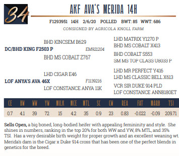 F1293951 14H 2/6/20 POLLED BWT: 85 WWT: 686 Sells Open