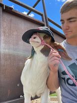 4-H/FFA Market Goat- Exhibitor is Ben and he is 15 years old. It will be his 1st year showing a goat. This is 6th of being and 4-H member and his 1st year in FFA. His pig's name this year is Michael Jordan. Ben likes his goat's atheleticism. He shows market swine, market goat and market steer. Ben was the FFA Creed District Winner.His goal is to win the goat show