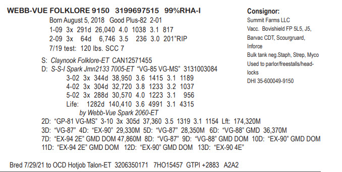 Bred 7/29/21 to OCD Hotjob Talon-ET 3206350171 7HO15457 GTPI +2883 A2A2