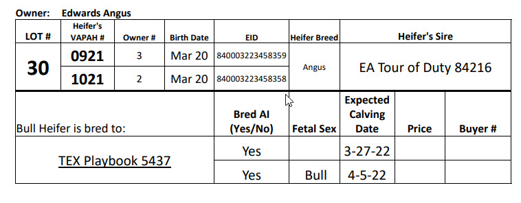 Mountain Mama Bred Heifer & Cow Calf Sale