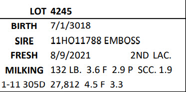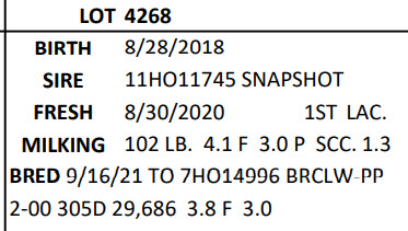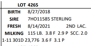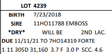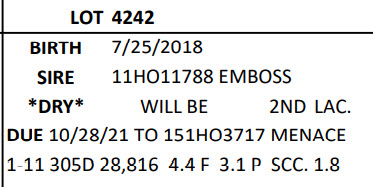 8/12/2018 SIRE 7HO11585 STERLING 1-10 305D 24,168 3.9F 3.1P SCC. 4.3 DUE 11/4/21 TO 151HO3737
