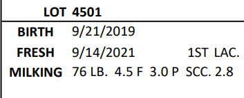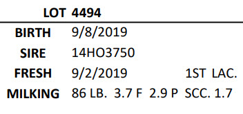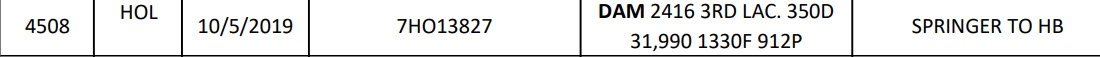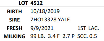 10/18/2019 SIRE 7HO12615 FRESH 10/7/21 1ST LAC.