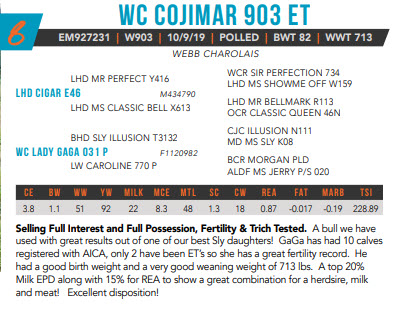 EM927231 | W903 | 10/9/19 | POLLED | BWT 82 | WWT 713 Selling Full Interest and Full Possession, Fertility & Trich Tested. A bull we have