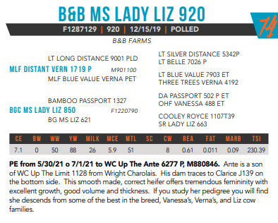 she descends from some of the best in the breed, Vanessa’s, Verna’s, and Liz cow