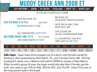bull!! Ann ranks in top 15% for Milk, 25% for MTL, and 1% FAT. Duke 914 is one of