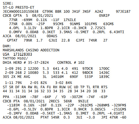 MARSHLAND DAIRY LLC HEIFER AND COW REDUCTION SALE