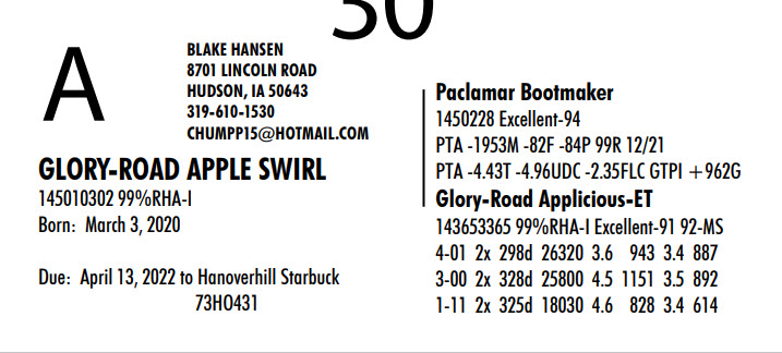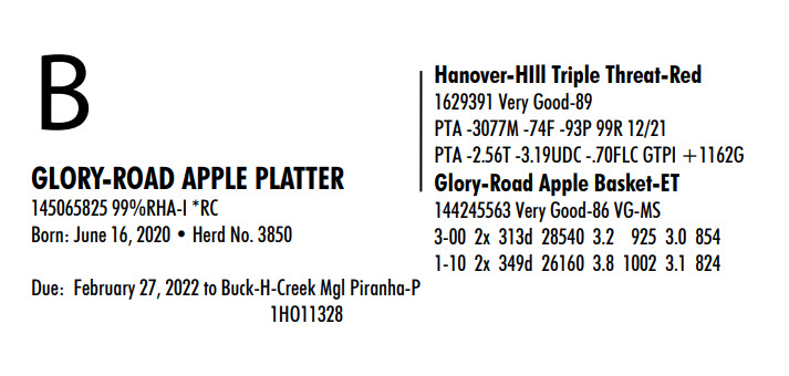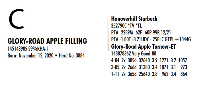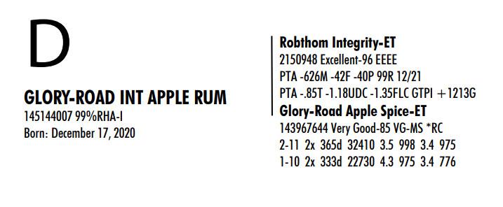 Born: November 15, 2020 Herd No. 3884 D GLORY-ROAD INT APPLE RUM