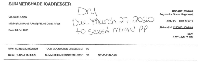 Sire: Mirand - SEXED