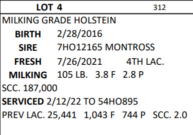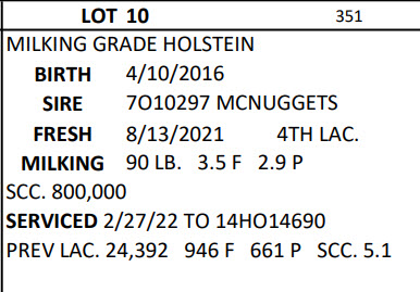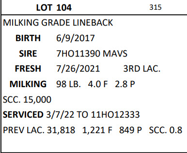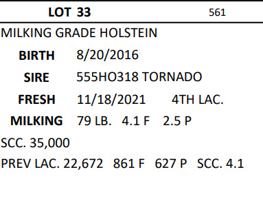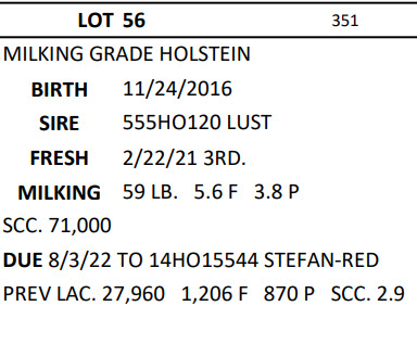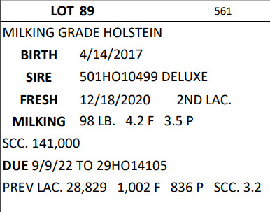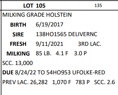 This top dairy sale will consist of 100+ cows and 60 heifers and will be sold right on the farm! 53 in 1st lac. and 36 in 2nd lac