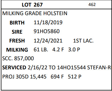 SIRE: 501HO11094 MAD MAX REPO STATUS: DUE 4/4/22 TO 511HO15061 HAWTHORN BIRTHDATE: 03/31/20