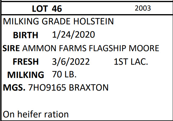 SPECIAL DAIRY COW AND HEIFER SALE AT BRUBACKER'S