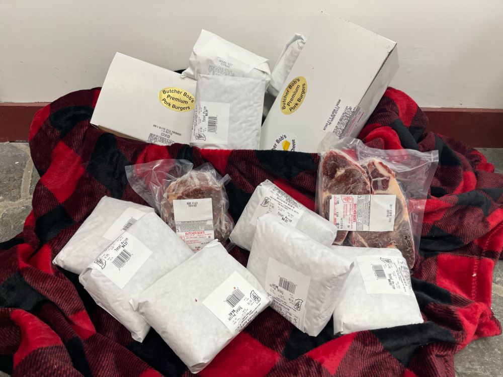 10 lbs ground beef, 1 6lb box pork burgers, 1 6 lb box of Jalapeno & Cheddar pork burgers, 1 package Ribeye Steaks, 1 package filets and a cooler. DONATED BY: Butcher Bobs, Lagrange, IN