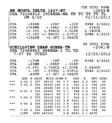 217 Head of Outstanding Official DHIA Registered Holsteins