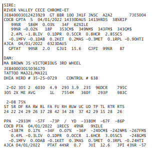 57 LBS. MILK, 3.4% FAT, 3.0% PROTEIN (APRIL TEST)