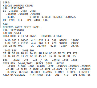 DHIA HERD # 33-51-0672 CONTROL # 1670
