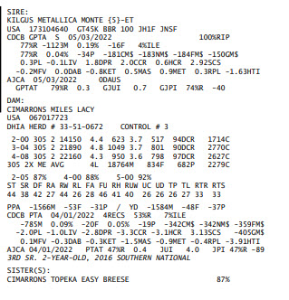 Bred 5/7 to 507J5032 sexed Victorious