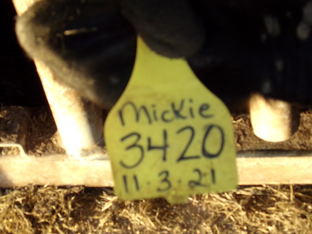 Holstein Heifer, Ear Tag #: 13AIL7692, ''MICKIE'', Herd ID 982000433703891, Birth Date: 11/3/21
