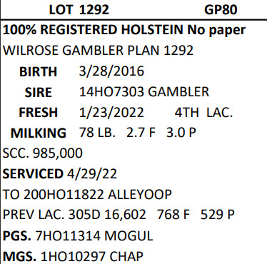 Walt's Dairy LLC SALE AT BRUBACKER'S