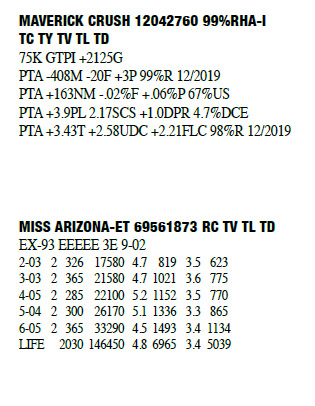 2-11 2 143 8801 4.3 382 3.5 304 Bred 2/28/2020 to