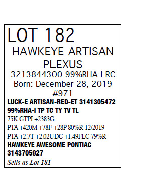 3149517268 99%RHA-I Born: April 17, 2018 #827 Bred 11/29/2019 to S-S-I Partyrock Profit-ET 3014334961 7H13195