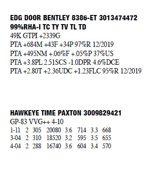 3138618373 100%RHA Born: September 22, 2016 Payton G-79 ++G+G 2-08 2-00 2 365 19740 4.2 836 3.5 683 Sells Fresh 3/1/2020