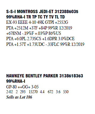 3143705912 99%RHA-I Born: August 9, 2017 #773 2-05 2 48 3494 3.6 127 3.3 116 (RIP) Sells Fresh 1/15/2020