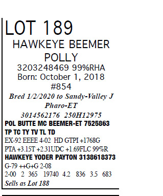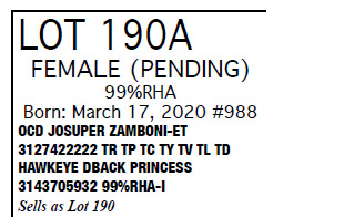 3149517277 99%RHA-I Born: June 8, 2018 #836 Bred 1/3/2020 to Sandy-Valley J Pharo-ET 3014562176 250H12975