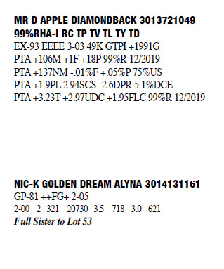 3143705899 99%RHA-I Born: March 24, 2017 Poker VG-86 VVVVV 2-09 2-01 2 301 24005 3.6 865 3.3 803 (RIP) Bred 2/16/2020 to S-S-I Montross Jedi-ET 3123886035 7HO13250