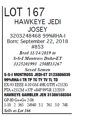 3203248468 99%RHA-I Born: September 22, 2018 #853 Bred 11/14/2019 to S-S-I Montross Duke-ET 3125201993 250H13267 Sexed Semen