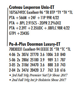McWilliams Farm sends 35 incredible hand-picked cows from their exceptional herd. Genetic Link Holsteins, Rolling-Spring Holsteins, Keystone Farms, MD-Hillbrook Holsteins, Arthaven Holsteins, My-Type Holsteins, Pecan-Tree Holsteins, Wea-Land Holsteins, All-Glo Holsteins, Pennwood Holsteins and Jerseys, C-Cove Holsteins, Jo-D Roses Holsteins & Jerseys, Faus Family Farms, Esbern-OM Holsteins, and Mercuro Holsteins