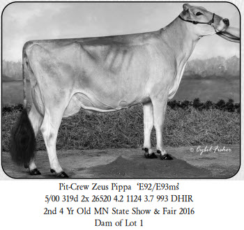 Born: 07/03/2017 Tattoo: 1239 / 1239 Consignor: SPELTZ, JOE & DONNA UTICA MN 04/03 E90 E90 E91 V85 E90 E90 (10/21) PPR: +5 41%R PTAT: +0.1 40%R PTA: +15m -5f +4p -7NM$ 30%$ 02/06 365d 2X 19790 3.6 720 3.5 683 DHIR 03/10 365d 2X 25260 4.3 1075 3.5 878 DHIR Bred to: KAR-LINN REESES RAMPAGE 840003140014659 Genetic Conditions: PT DT MT WT BH2T PPR: +12 81%R PTAT: +0.6 80%R (08/22) PTA: +219m -9f +7p -15NM$ 90%R (GEN) PTA PL: +1.1 SCS: +3.09 DPR: -0.6 SCE: +2.4 LIV: -0.2