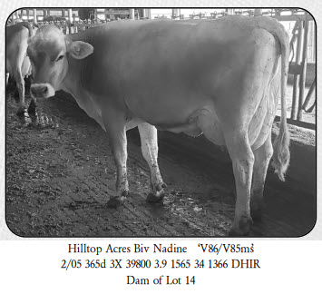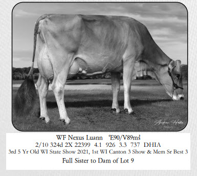 Born: 03/11/2020 Tattoo: L756 Consignor: SCENIC RIDGE SWISS & STACY YOUNG, ELGIN IA Parent Average PPR: +8 PTAT: +0.5 PA: +512m +4f +10p -57NM$ Bred 2/22/2022 to: PORTMANN BS BAYS JONMAR 120145720068 Genetic Conditions: PT DT MT WT BH2T PPR: +165 62%R PTAT: +0.4 64%R (08/22) PTA: +1122m +42f +37p +511NM$ 65%R (GEN) PTA PL: +4.3 SCS: +2.74 DPR: +0.5 SCE: +2.9 LIV: +1.2