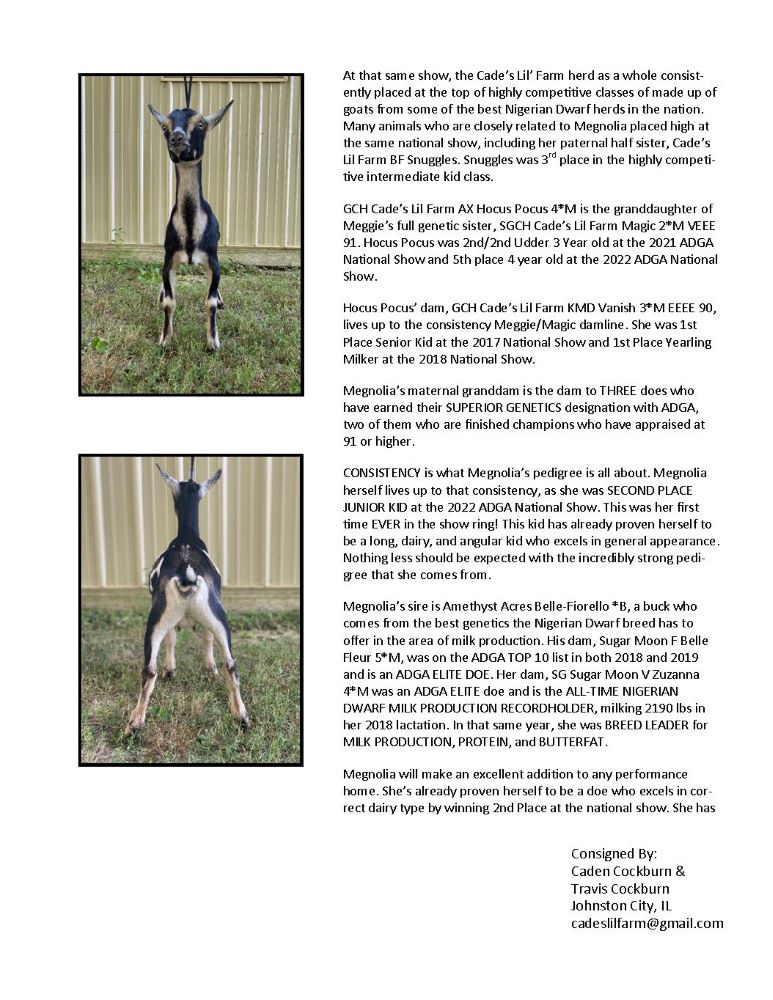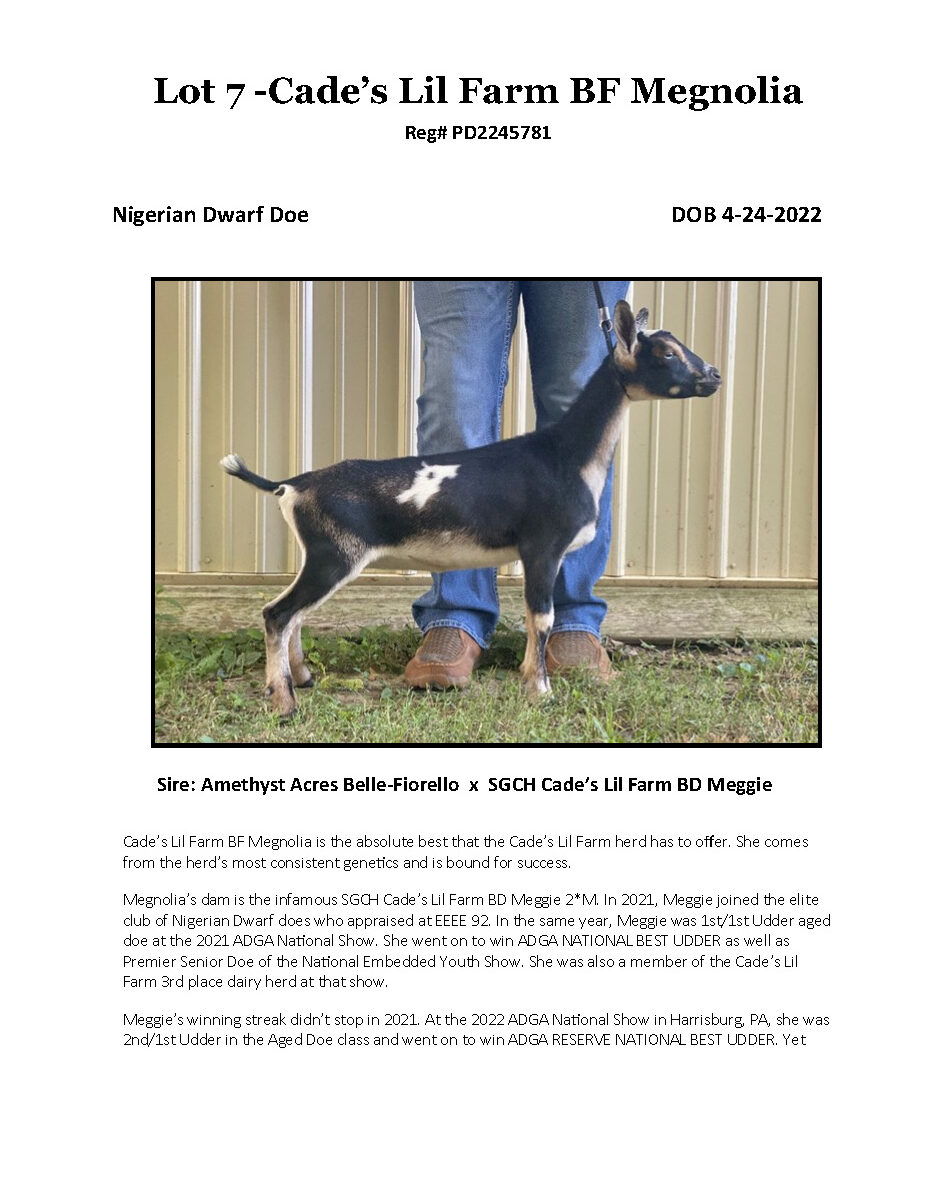 Dam: SGCH Cade’s Lil Farm BD Meggie