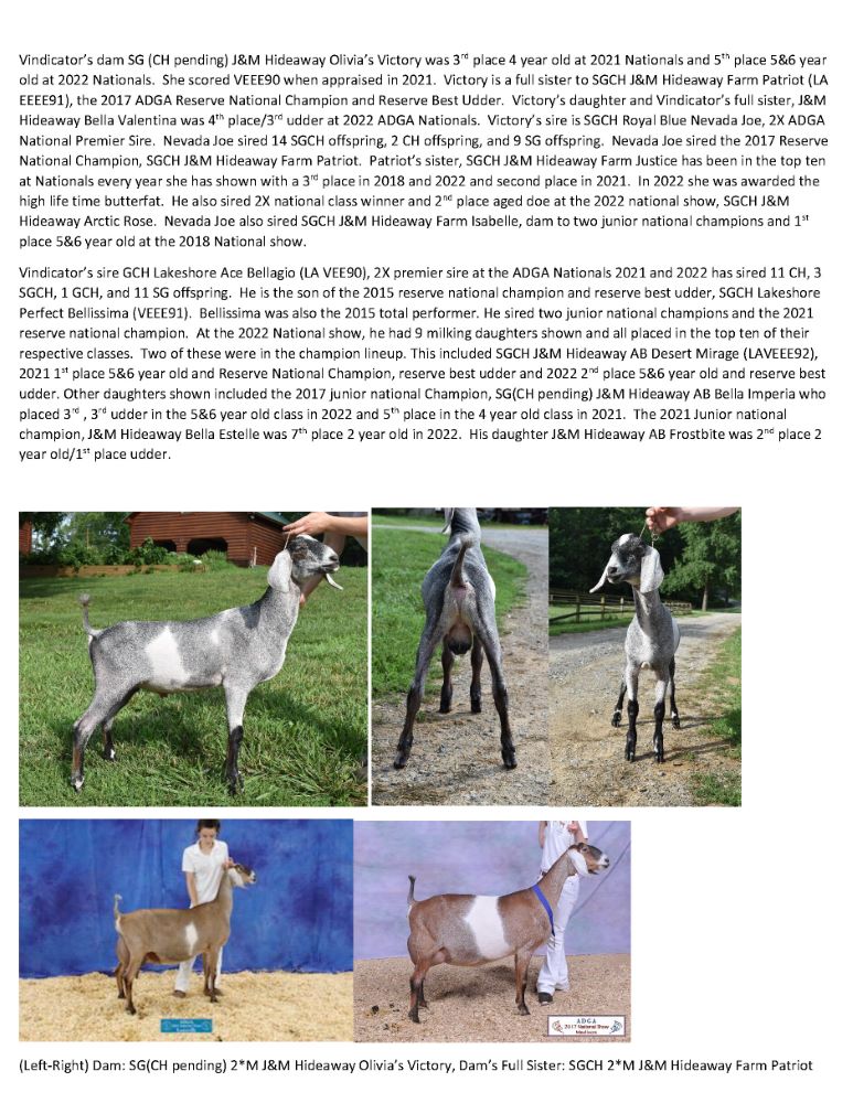 Dam: SG(CH pending) J&M Hideaway Olivia’s Victory 2*M