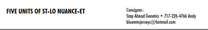 Consignor: Step Ahead Genetics 717-226-4766 Andy bluemtnjerseys@hotmail.com