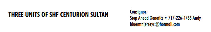 Consignor: Step Ahead Genetics 717-226-4766 Andy bluemtnjerseys@hotmail.com